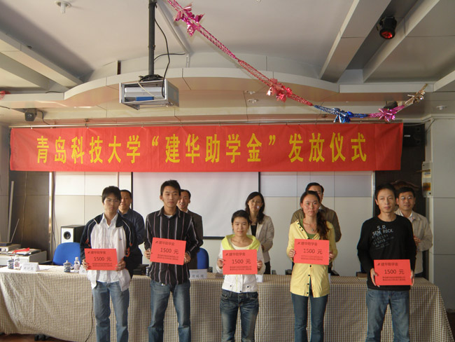 10月15日上午,机电学院在学院会议室举行“建华助学金”发放仪式,青岛建华集团党委书记周瑞国以及学生处、校团委和机电学院领导,全体“建华助学金”获得者参加了发放仪式。