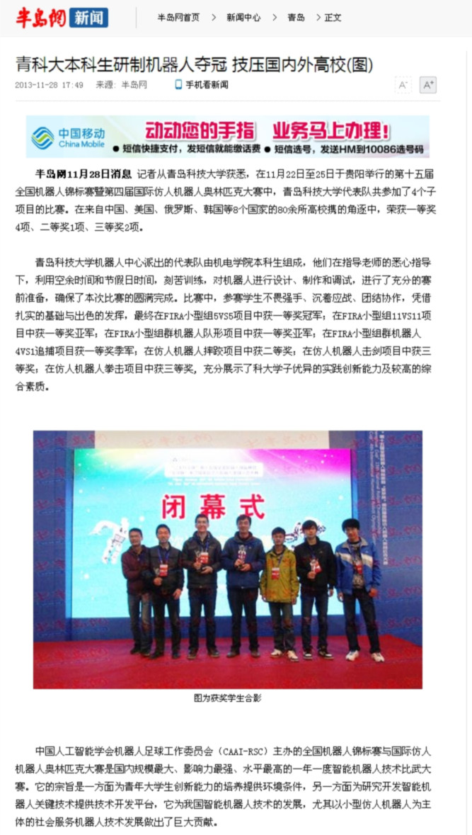 青科大本科生研制机器人夺冠 技压国内外高校