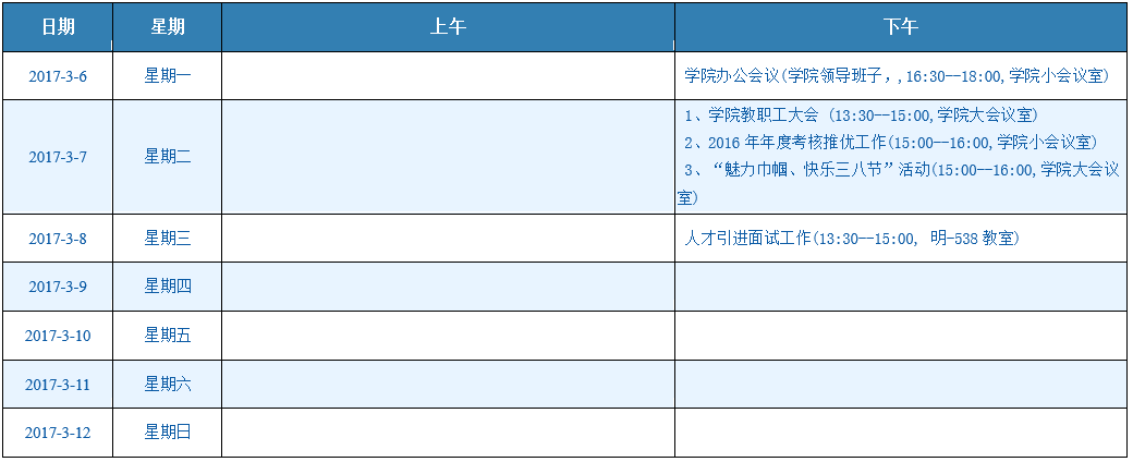 一周会议安排(3/6-3/12)