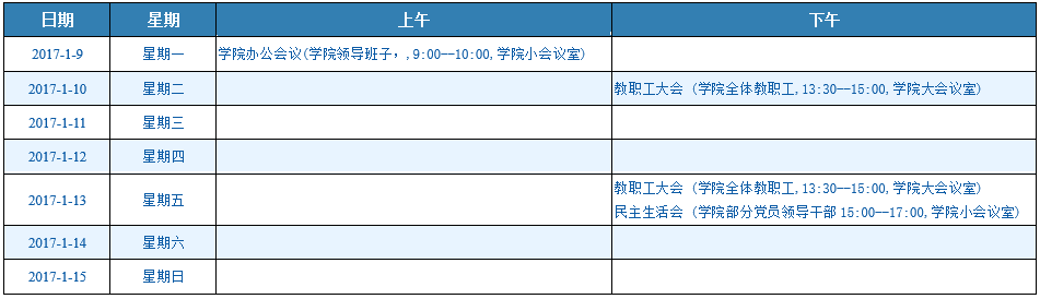一周会议安排(1/9-1/15)