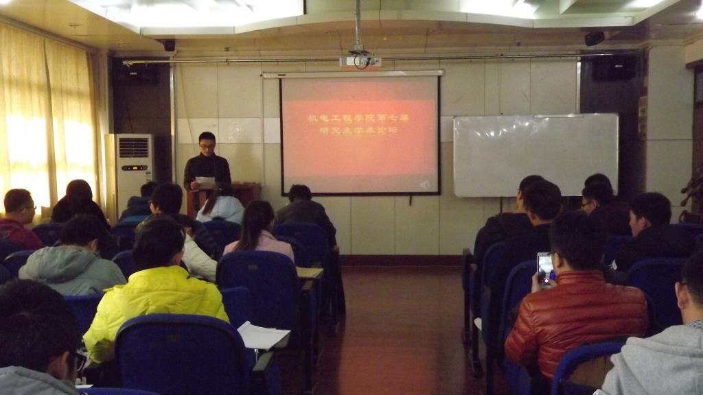 12月14日下午,机电学院第七届研究生学术论坛第二期在学院五楼大会议室开讲。机电学院邓芳、单体坤、毕海盛、戴萍四位老师担任评委,机电学院全体研究生参加了此次论坛。