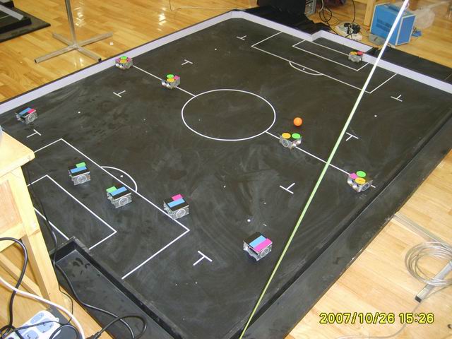 2007中国机器人大赛暨国际机器人足球锦标赛(RoboCup)中国公开赛于10月26日到28日在济南长清大学城举行,今年我校第一次派队参加机器人大赛,由我校中澳机器研发人中心七名成员组队参加了FIRA小型组的3:3、5:5和11:11三个比赛项目,经过三天的激烈角逐,我校代表队在以上三个项目中均取得了优异成绩,荣获三个二等奖,其中3:3和5:5分别位居第六名和第五名,11:11项目获得季军。这是本中心自成立以来,继本科教学评估之后为学校赢得的又一殊荣。