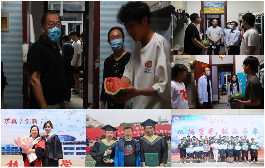 毕业生离校之际,学院领导班子与全体辅导员走访毕业生宿舍,为毕业生送上象征着硕果累累、红红火火的西瓜,与毕业生们进行亲切的交流与沟通,听取学生在毕业各方面的疑问和困惑并作出指导性解答,激励毕业生们要继续奋斗,争当“奔涌的奋斗者”,并祝愿毕业生们在更大的世界书写属于自己青春的璀璨华章。