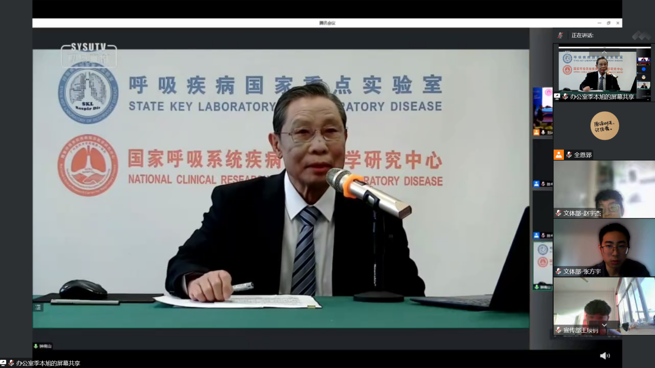 12月15日15时,机电工程学院学生会线上组织观看钟南山院士主讲的全国高校抗疫大讲堂“新冠(Omicron)疫情动态及应对”的讲座。