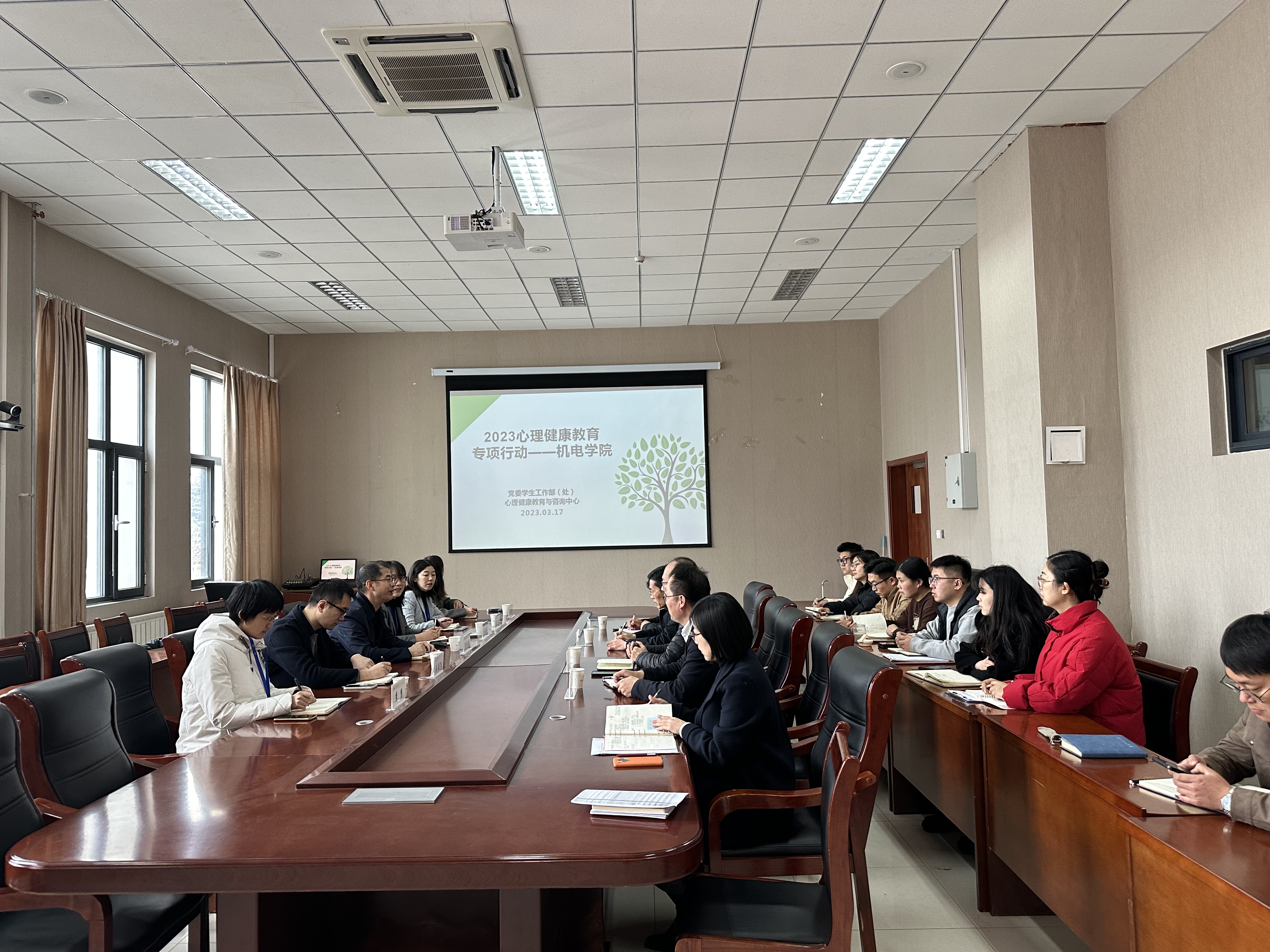 为扎实开展我校心理健康教育,关注学生身心发展,结合我院学生实际,通过多种方式对不同年级层次的学生进行心理健康教育和指导,3月17日,学生处副处长曹永俊、心理中心主任李海玲一行到机电学院指导心理健康工作,开展心理健康教育工作专项行动座谈研讨。机电学院副院长张斌、党委副书记兼副院长肖强、副院长张卫锋、副院长李剑光及全体辅导员参加会议。