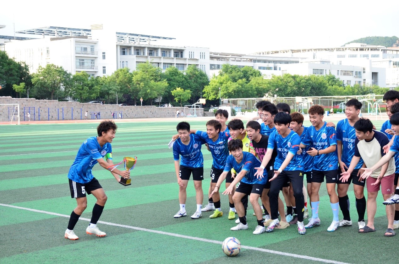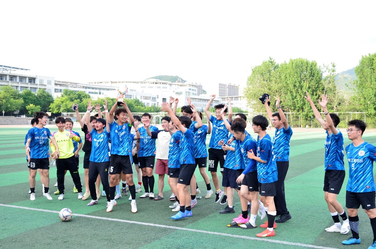 本场决赛我院队员团结拼搏,积极应战,展示出了机电学院的精神面貌。为了此次“科大杯”冠军,机电学院足球队全力备赛,无论是场上比赛还是场下训练,队员们都竭尽全力,在训练中不断弥补自己的短板,在决赛时,已毕业的大四学长牺牲假期时间如期归队参赛,做到有始有终,最终如愿拿到了“科大杯”冠军,继上学期育新杯冠军以来,我院又一次站在了科大足球的山巅,成为单学年两冠军的双冠王!