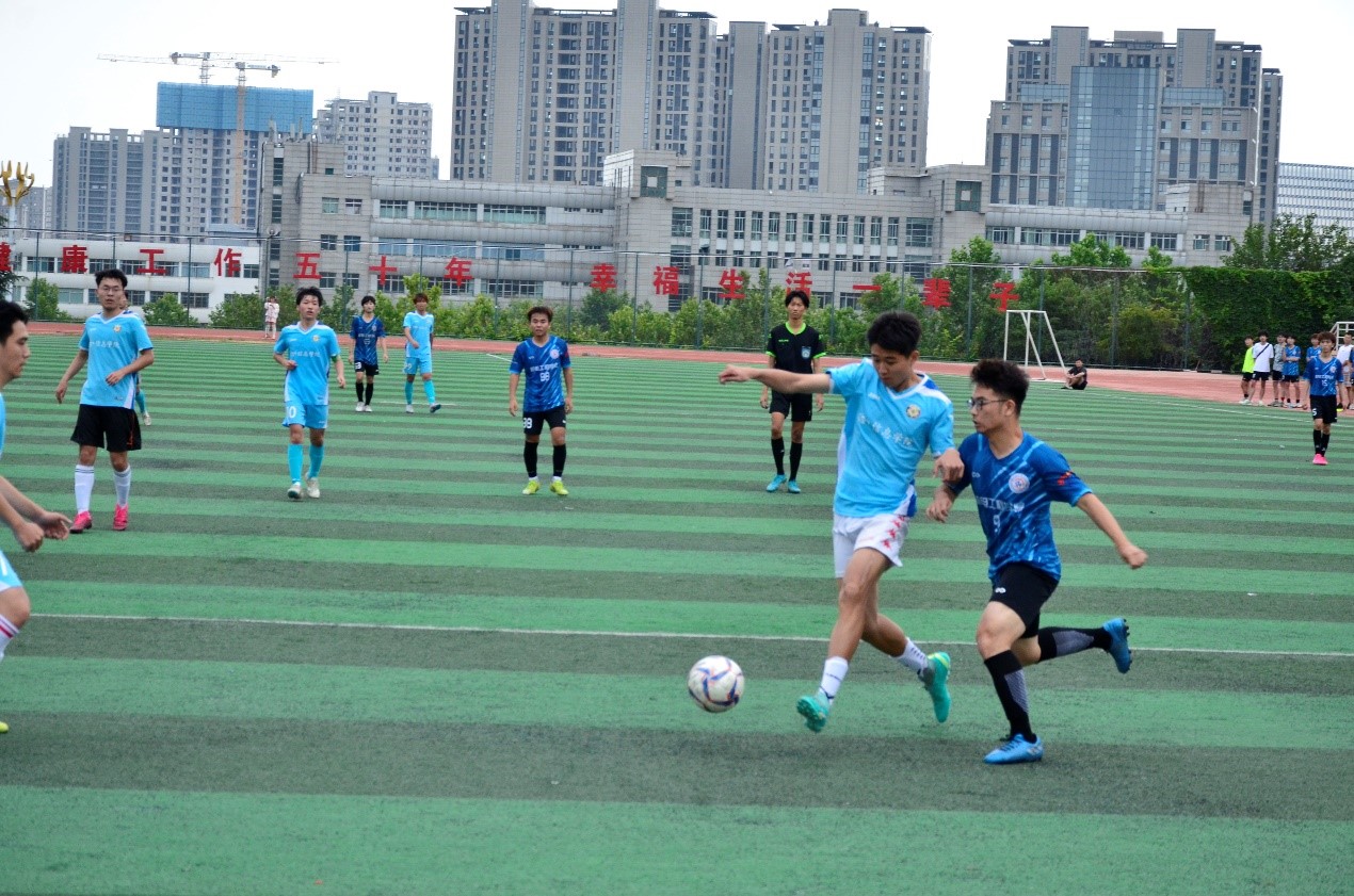 7月1日下午,青岛科技大学第40届“科大杯”足球赛决赛于崂山校区操场开赛!对手是我们的“老对手”信息外国语联队。随着裁判一声令下,双方迅速进入状态,展开了激烈的角逐。开场后双方你来我往,展开对攻之势,开场仅仅5分钟,我院边锋马浩元首开记录,将场上比分改写为1:0,也将场边观众的情绪点燃,伴随着场边的鼓声和呐喊声,机电的队员们愈战愈勇,展开了围攻之势,信外学院联队也以积极防守的态势应战,不断地抓住反击机会制造威胁。随后辛宗霖和古斯乐图接连破门,场上比赛节奏也完全被机电学院掌控,3:0的比分也保持到了上半场结束。