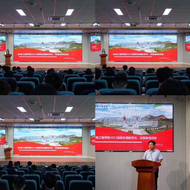 为保障2023年秋季学期迎新工作有序进行,机电工程学院于8月31日13:00在机电楼530报告厅举行2023级新生领航、志愿者培训会。学生会指导老师于超、2022级辅导员穆青青老师、2023级新生辅导员崔瑛老师、50名领航学长以及150名迎新志愿者共同参会。