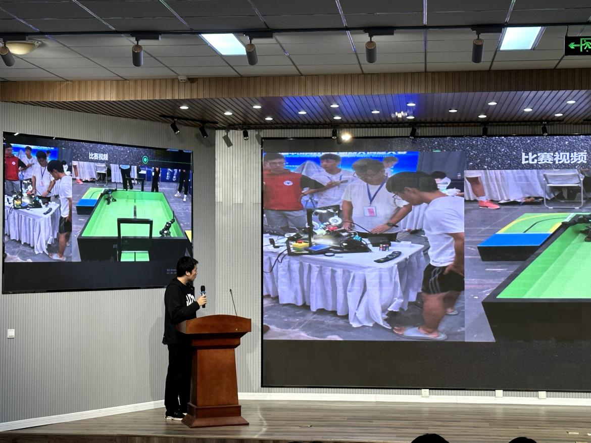 孙庆磊同学先对全国大学生节能减排社会实践与科技竞赛做了基本的介绍,与大家分享了大赛前的准备以及比赛过程首先中的经验,强调了比赛中所需的注意事项,鼓励同学们积极参与节能减排大赛。随后赵振瑞同学与大家分享了中国高校智能机器人创意竞赛过程中的所见所观以及所感,建议大家要尽可能多的充实自己,多去学习与专业有关的课外知识技能,并向大家讲述了各位学长学姐准备比赛的经历与过程。