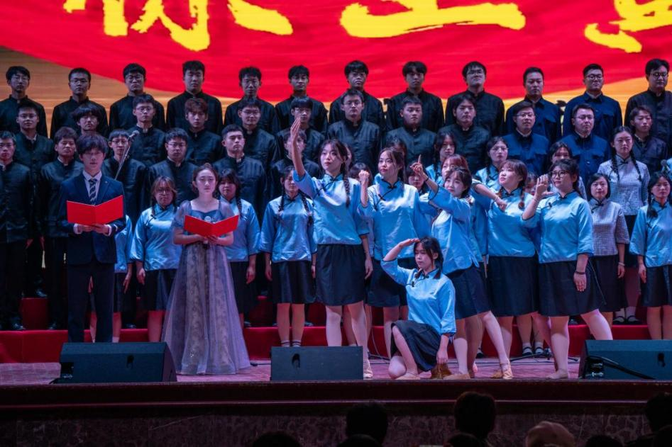 此次合唱比赛不仅是一场丰富多彩的文化艺术盛宴,也是一堂生动的音乐思政课。回首遥望“一二九”运动,青年学生的拳拳报国之声仍令人热泪盈眶,每每听到红色旋律,依旧对扣人心弦的旋律感到神往。学院将《黄河大合唱》中最鼓舞人心的第七乐章《保卫黄河》作为演出曲目,以短促跃动的曲调、铿锵有力的节奏,全景描绘了抗日军民英勇战斗的壮丽场景,表达了战胜敌人、夺取胜利的激情,展现出必胜的乐观主义情怀。机电青年在乐声中感悟先辈精神,在训练中磨砺奋进品格,发扬“一二九”革命抗争精神,努力成长为堪当民族复兴大任的时代新人,为实现中华民族的伟大复兴贡献青春力量!