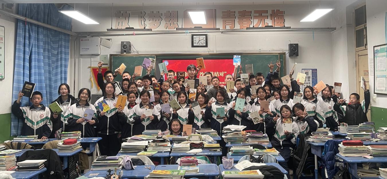 启动仪式上,青岛科技大学第25届研究生支教团成员张皓越介绍了城阳乡初级中学及7年级2班有关情况,并介绍了由成型中韩232团支部全体团员捐赠的“沙海图书角”。图书角包含《呐喊》《简·爱》“高尔基自传三部曲”等一系列世界文学名著,可以让同学们在学习之余感受文学的魅力,进一步丰富精神世界。同时《古代汉语词典》《初中生必背古诗文》等工具书也应有尽有,方便学生们随时查找使用。
