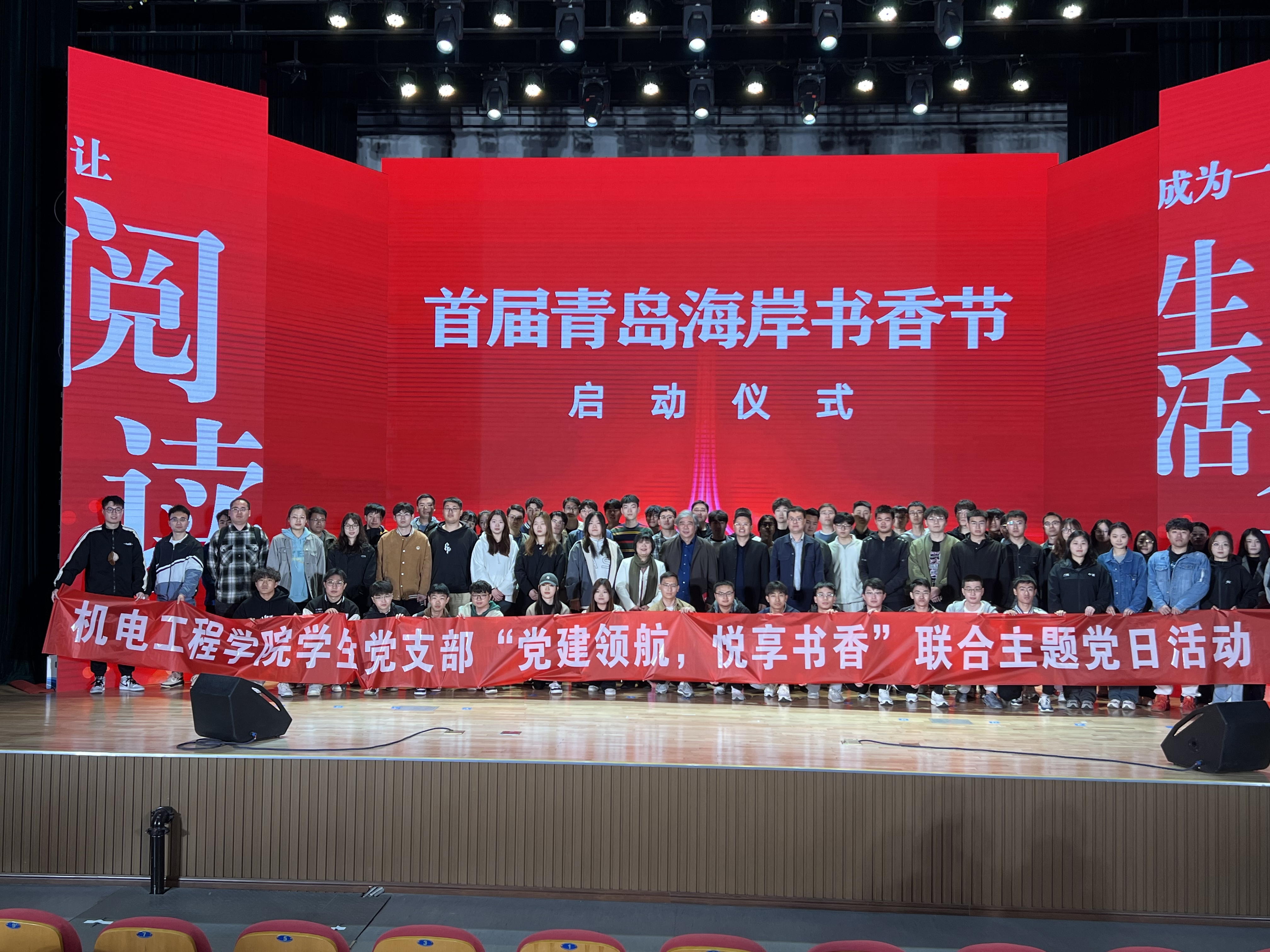在第29个世界读书日来临之际,机电工程学院组织师生党员赴崂山区市民文化中心礼堂开展师生党支部“党建领航、悦享书香”联合主题党日,校党委宣传部副部长贾可好、机电工程学院师生党支部党员、发展对象、入党积极分子代表70余人参加活动。