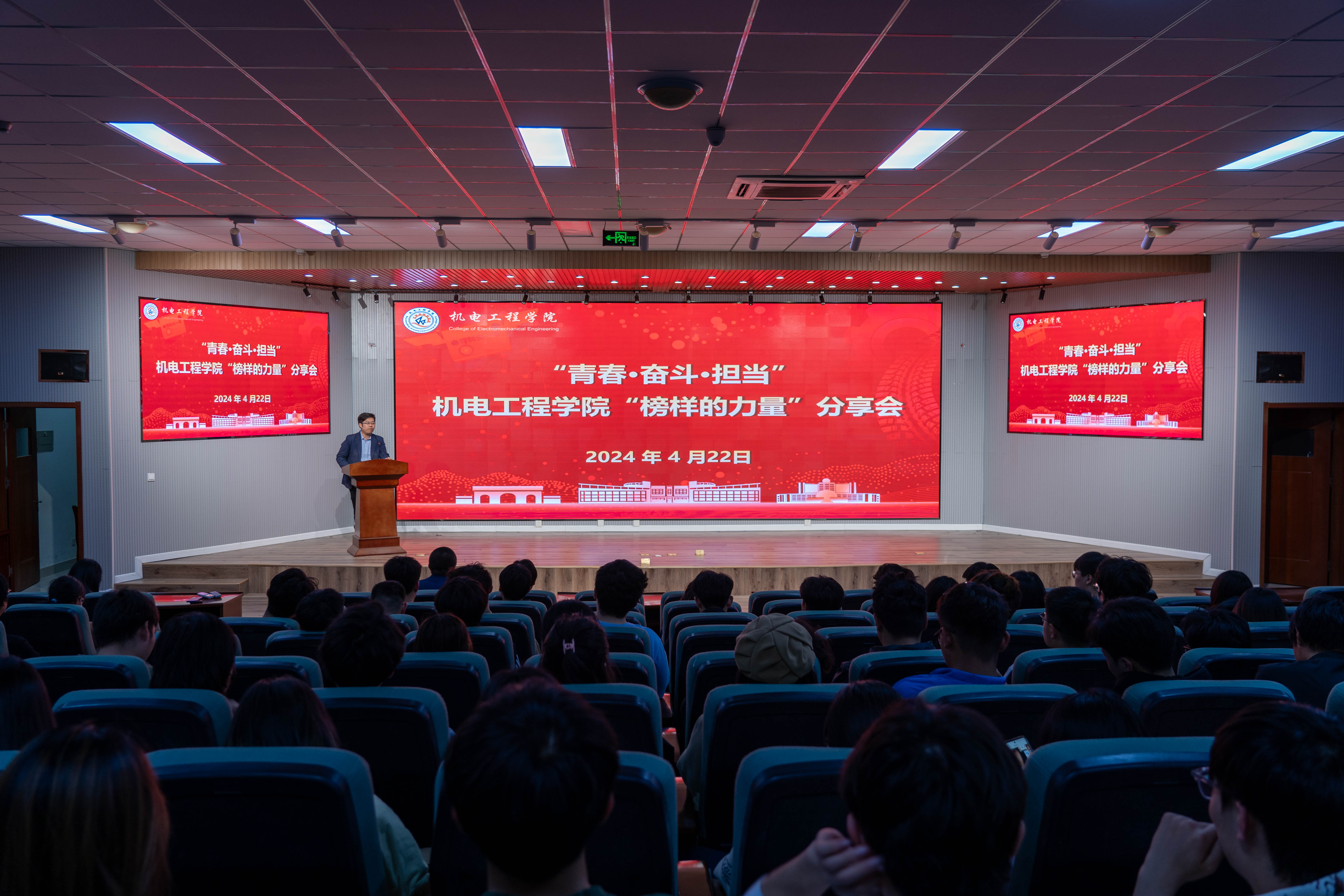 值五四青年节来临之际,为深入学习贯彻落实习近平总书记关于青年工作的重要论述精神,积极引导青年学生树立远大理想,明确使命担当,4月22日,“榜样的力量”分享会在机电楼530会议室召开。机电工程学院党委副书记兼副院长杨小明、辅导员于超、穆青青、杜康参加分享会,学生会骨干、融媒体中心全体成员、易班工作站全体成员、2023级全体班长、团支书、副班长等200余人一同参会。