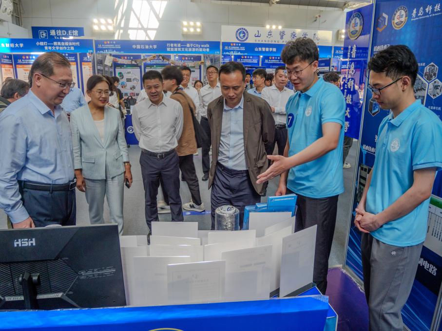 决赛期间,共青团山东省委书记殷世逸一行看望我院参赛作品展区,听取作品情况汇报,与参赛同学亲切交流,勉励广大学子勇担时代使命,厚植创新沃土,激发创造潜能,为中国式现代化挺膺担当。