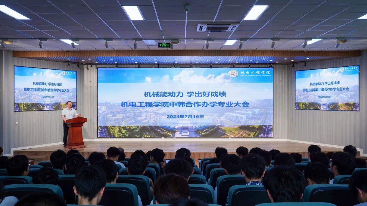 为加强中韩合作办学专业学风建设,推进学院中韩合作办学高质量发展,7月16日下午,机电工程学院中韩合作办学专业大会在机电楼530召开,学院党委书记任允晓、副院长杨化林、合作办学办公室主任付平出席活动,23级中韩专业课教师、班主任、辅导员、全体学生200余人参加活动。