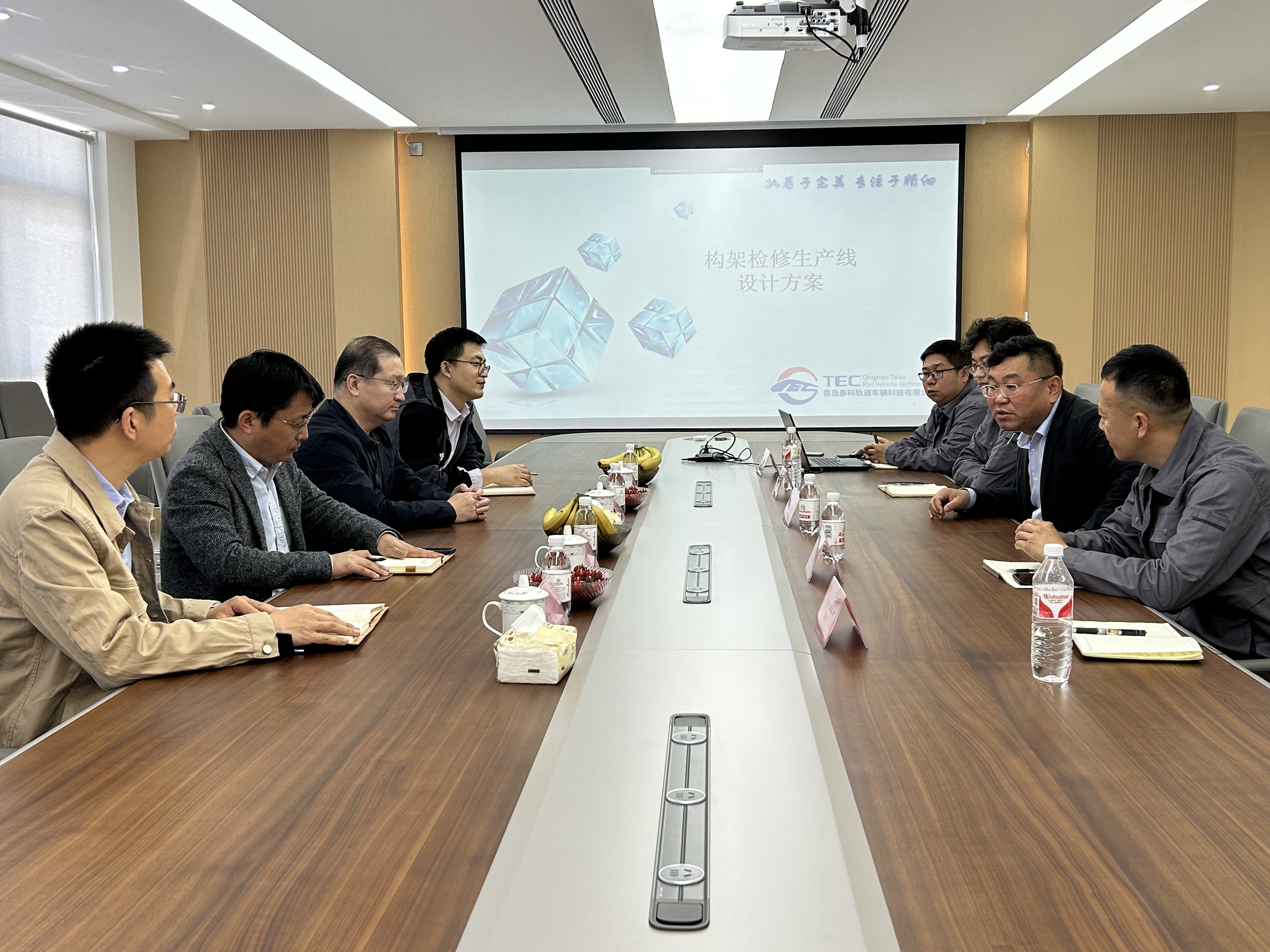 青岛泰科轨道车辆科技有限公司董事长杨传良对任允晓一行表示热烈欢迎,详细讲解公司发展、企业文化、核心技术等方面。任允晓介绍学校学院发展历史、办学格局、教学特色以及科研成果转化等方面优势,希望与企业以智能制造、数字孪生、复合焊接等方向为切入点,充分发挥学科交叉优势和工程化研发能力,助力企业发展升级改造。会后,双方共同前往研发中心和生产车间实地参观。