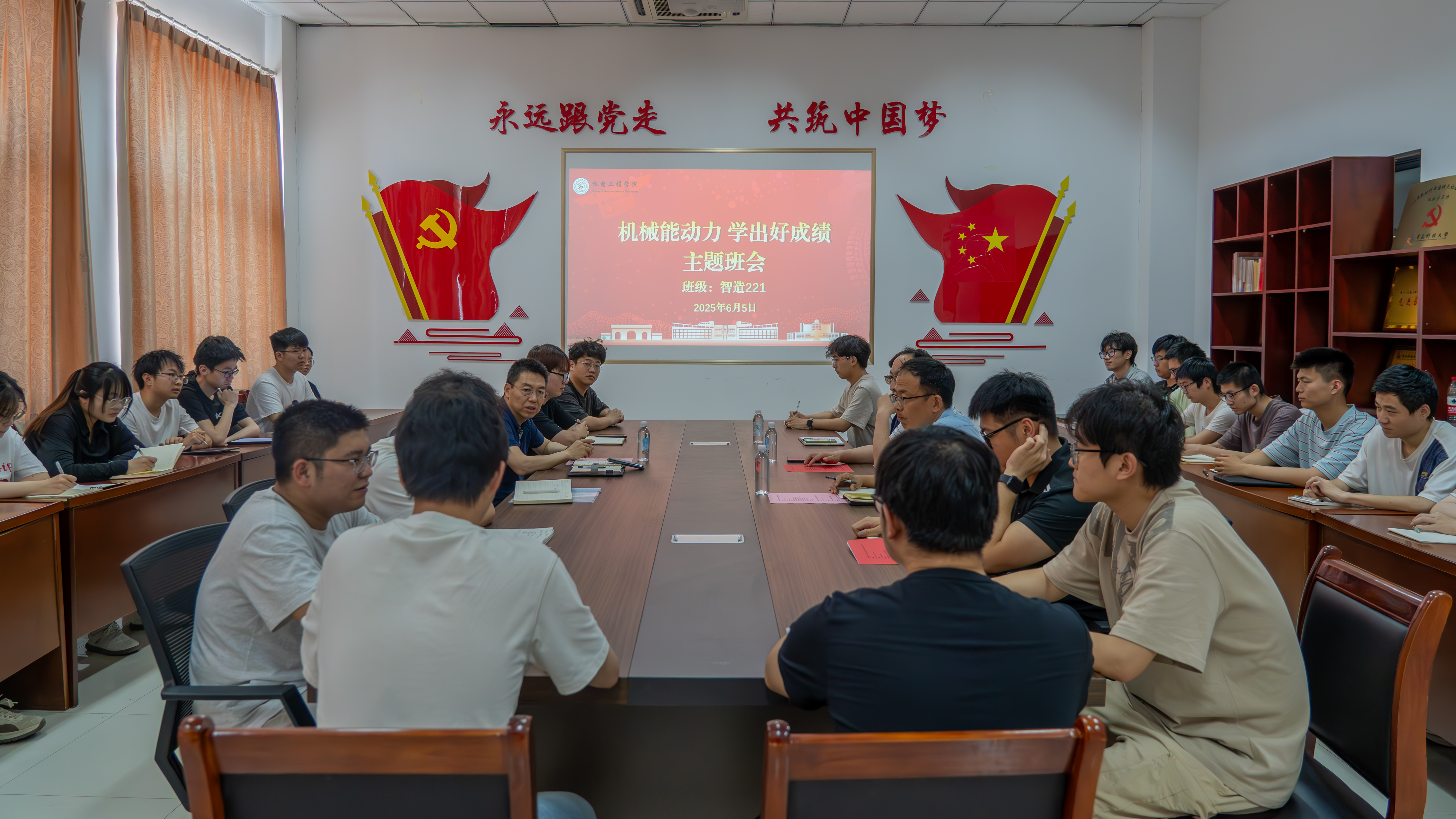 6月5日,校党委常委、副校长吕万翔深入所联系班级智造221班,通过“机械能动力,学出好成绩”主题班会、面对面座谈交流等形式,倾听同学们心声,助力同学们成长。辅导员宋达主持主题班会。