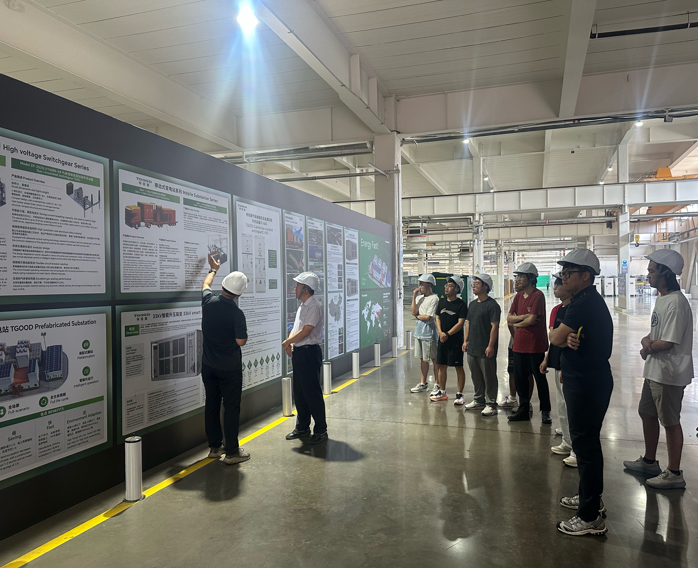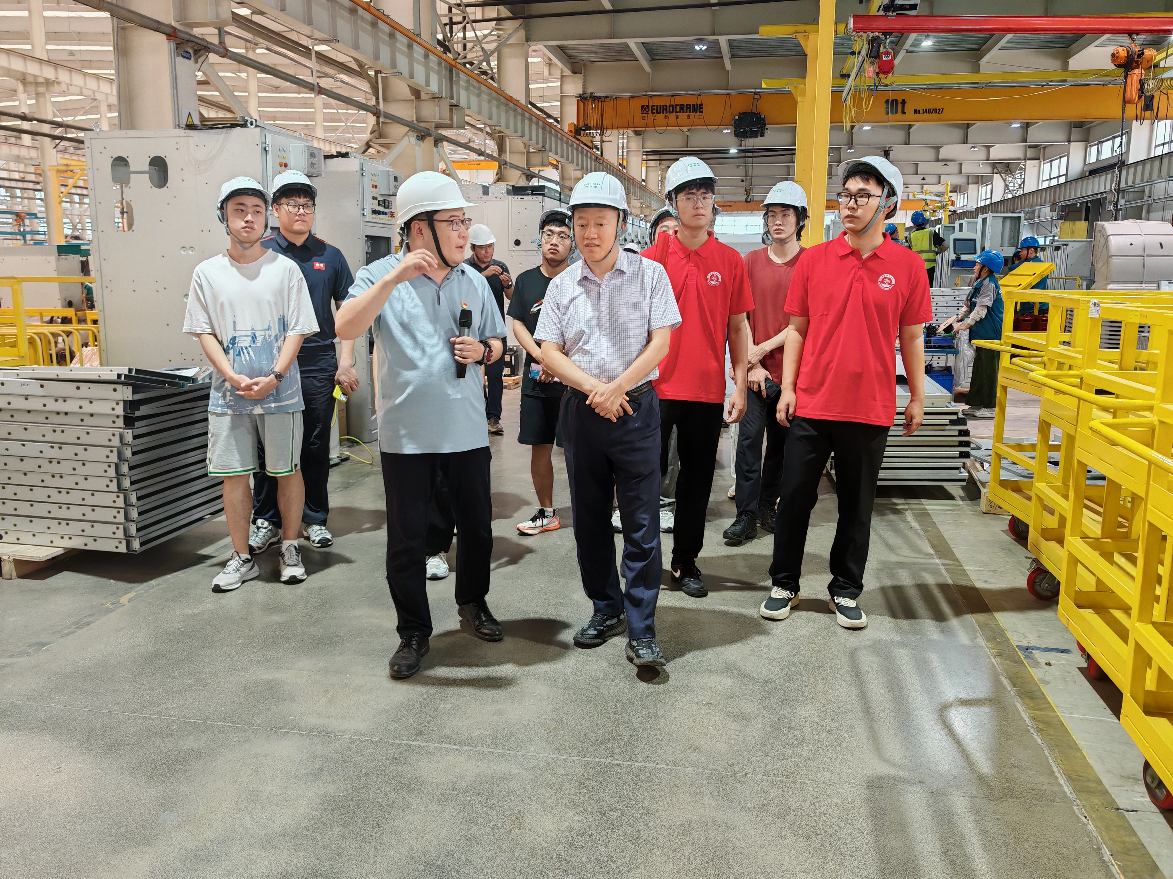 7月11日,机电工程学院党委副书记兼副院长杨小明一行15人赴青岛特锐德电气股份有限公司胶州生产基地开展访企拓岗。特锐德电气股份有限公司技术数智化标准副总工程师王贵罡、人力资源中心总经理助理焦雪莹、人力资源中心校园招聘负责人董琛陪同调研,学院8名2026届毕业生参加活动。