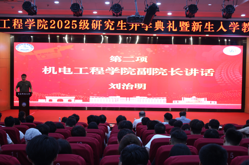9月16日,机电工程学院2025级研究生开学典礼暨新生入学教育大会在崂山校区第三报告厅举行。学院党委书记任允晓,党委副书记兼副院长杨小明,副院长张卫锋、李剑光、刘治明,教师代表、研究生辅导员以及全体硕士、博士研究生参加会议。会议由学院党委副书记兼副院长杨小明主持。
