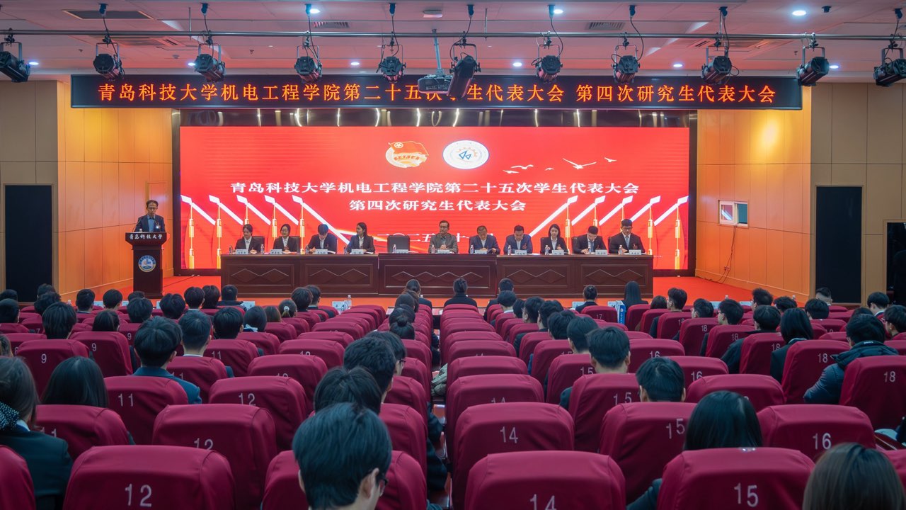 11月18日,青岛科技大学机电工程学院第二十五次学生代表大会、第四次研究生代表大会在崂山校区英科报告厅召开。机电工程学院党委书记任允晓、党委副书记杨小明、学院团委书记逄柏鹏、学院全体团干部、校学生会和研究生会代表、兄弟学院学生会和研究生会代表和145名代表参加会议。