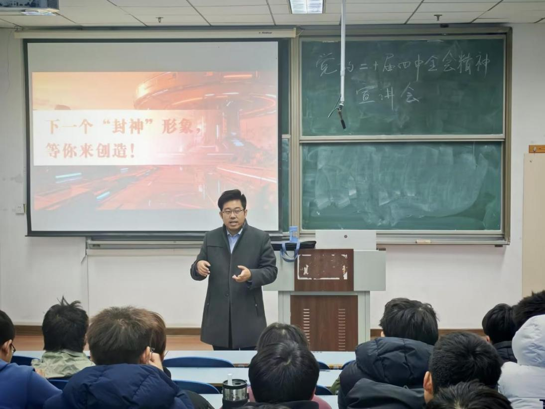 为深入学习贯彻党的二十届四中全会精神,引导机电学子深刻把握时代脉搏与专业使命。近日,机电工程学院开展了“百场宣讲进青年”党的二十届四中全会精神专题宣讲会。邀请团中央青年讲师团成员、学院团委副书记于超主讲。