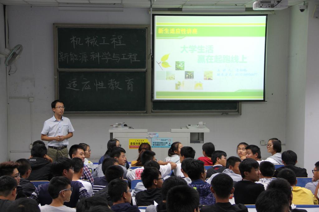 为了使学生尽快转变新身份、融入新环境、适应新节奏,9月27日晚,机电工程学院在弘毅楼E区举行2017级新生入学教育暨适应性教育讲座,机电工程学院新生辅导员和所有新生参加会议,新生适应性教育讲座由机电工程学院心理工作站老师逄柏鹏、曲智强和潘婷主讲。