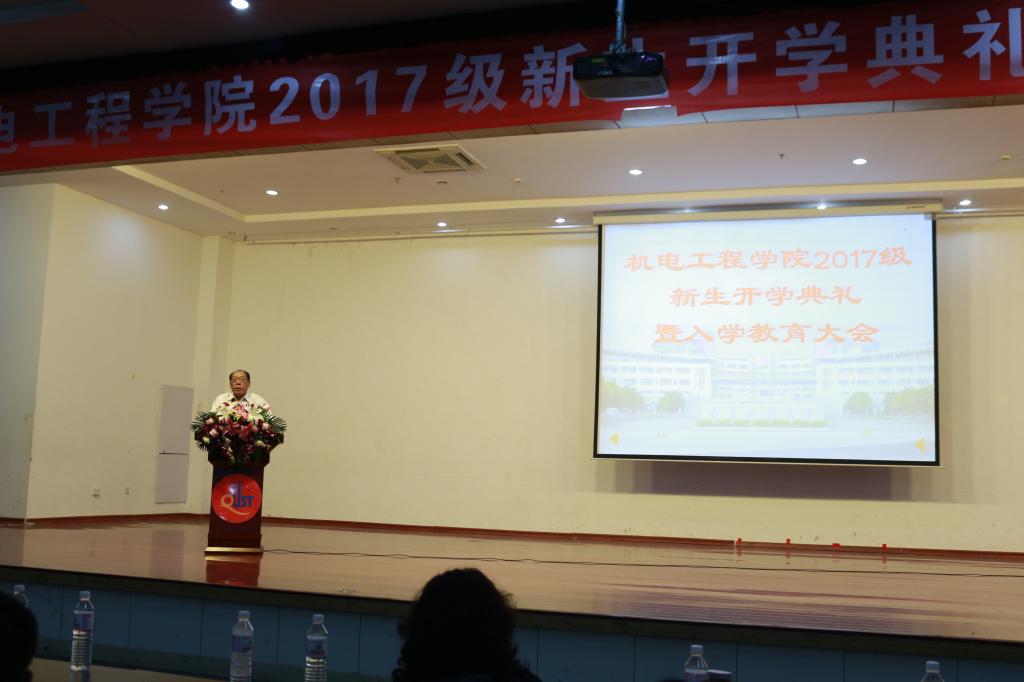 9月26日下午,机电工程学院在学校第二报告厅召开2017级新生开学典礼暨入学教育大会,机电工程学院院长何燕、党总支书记孙立军、各系主任和辅导员老师以及1067名新生参加会议,会议由机电工程学院副院长张斌主持。