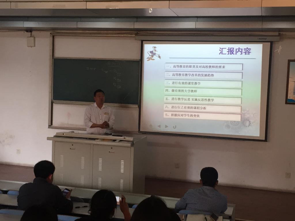 田绪东从青年教师教学能力提高心得、教学设计、教学方法等几个方面进行了深入讲解。田绪东围绕如何适应教学改革趋势做一名合格的高校教师进行重点讲解,尤其强调了高等教育教学改革的发展趋势、有效的课堂教学的开展,他认为,在教学中要多进行教学反思,实施反思性教学,同时也要进行行之有效的课程分析、积极应对学生的变化。田老师以机械三维造型与设计这门课程为例,给大家分享了教学设计的一些注意事项,并从教学目的、教学思想、教学分析教学方法和策略、教学安排、板书等方面系统地阐述授课思路、课程设计等方面的技巧,使青年教师更为详细地了解到授课过程中和课程设计上所需要注意的问题。会后,田绪东与青年教师进行了热烈交流和讨论。