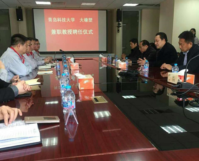 3月6日,青岛科技大学—大连橡胶塑料机械有限公司兼职教授聘任仪式在大连橡胶塑料机械有限公司会议室举行。副校长韦殿华,机电学院党总支书记孙立军、副院长郭建章、高机系主任边慧光、高机系仇卫星老师,大橡塑董事长洛少宁、总经理吴斌、副总经理杨宥人、人事处部长林桐等出席聘任仪式。