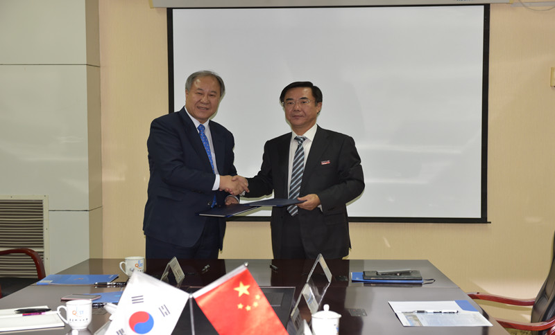 10月11日,韩国全州大学校长李镐仁教授一行莅临青科大参观访问,并与青科大签署“1+2”硕士课程项目协议书。校长马连湘与李镐仁代表双方在“1+2”硕士课程项目协议书上签字。国际交流处处长张宜恒,机电学院院长汪传生、党总支书记梁树清等参加签约仪式。