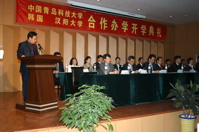 青岛科技大学和韩国汉阳大学合作办学2007级新生开学典礼于10月17日下午在东部校区第三报告厅隆重举行。韩国汉阳大学副校长元亭渊教授一行9人赴我校出席开学典礼。我校马连湘校长、李庆领副校长以及学校各有关部门负责人出席。开学典礼由国际交流处姜德杰处长主持,我校李庆领副校长、汉阳大学元亭渊副校长、机电学院汪传生院长以及机电学院教师和学生代表分别发言,机电学院400名学生参加了开学典礼。