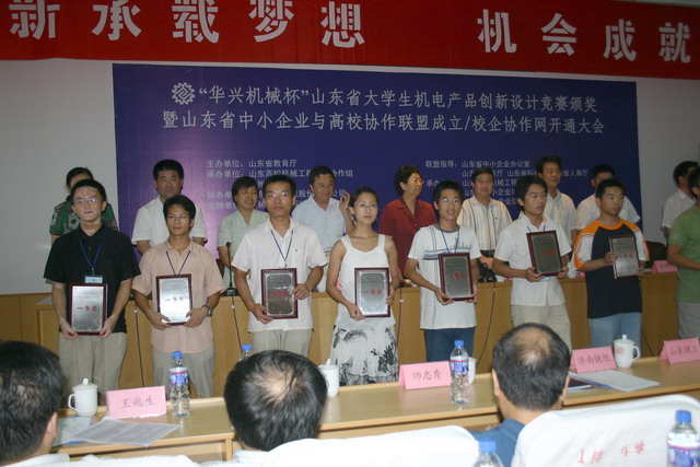 2007年8月23~25日,我校机电工程学院派代表参加了在德州学院举行的“2007年“华兴机械杯”山东省大学生机电产品创新设计竞赛”决赛。此次竞赛由山东省教育厅主办、山东高校机械工程教学协作组承办,以“绿色、环保、安全、和谐”为主题,全省共有来自山东大学、中国石油大学等50余所高校6000余名师生参加比赛,预赛作品达1200余件,涉及机械、电子、车辆、化工、纺织、轻工等行业,经过各高校评比,共推选出290个作品参加此次决赛。
