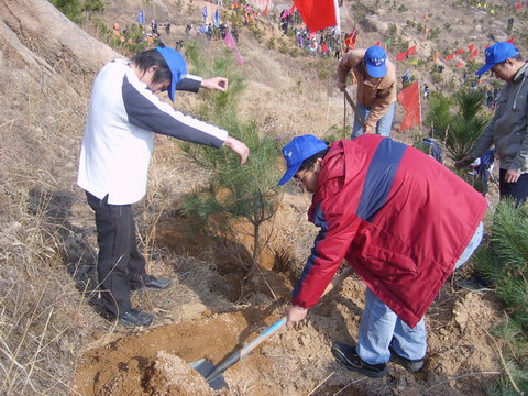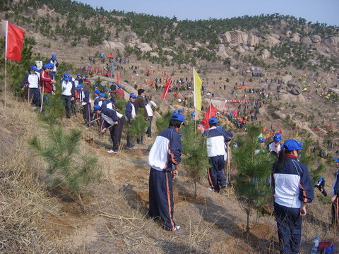 3月13日,机电工程学院组织学院的团员青年参加了山东省“迎绿色奥运,建和谐家园”活动暨青岛市“绿色奥运志愿者林”建设活动。上午9时,师生到达崂山区北宅街道周戈庄水库西山。植树现场,他们有的挖坑、有的放苗、有的扶树、有的填土、有的夯实……大家互相配合着,场面空前热闹、繁忙。经过一个上午的奋战,2000多棵树直立在崂山共青团林,在山风吹拂中迎风摇曳,呈现出勃勃生机。