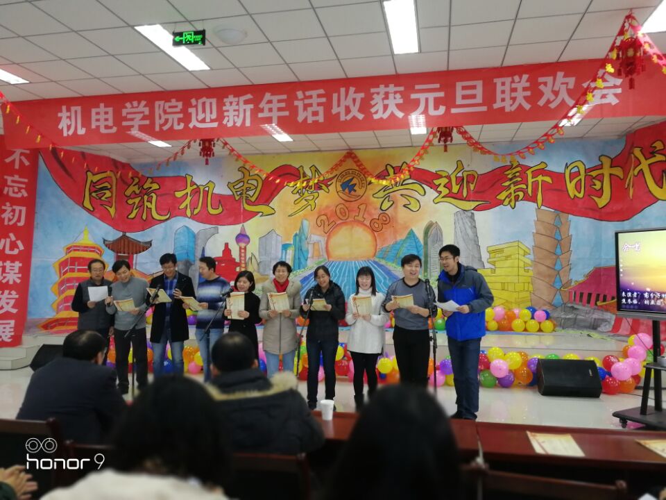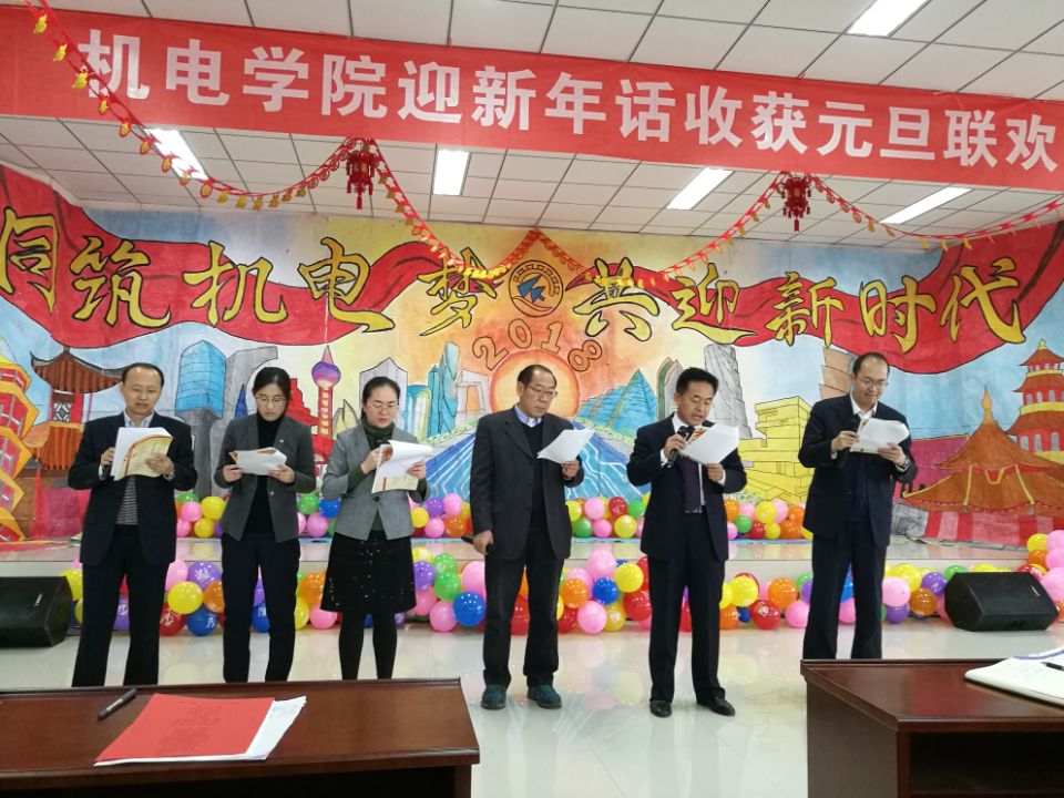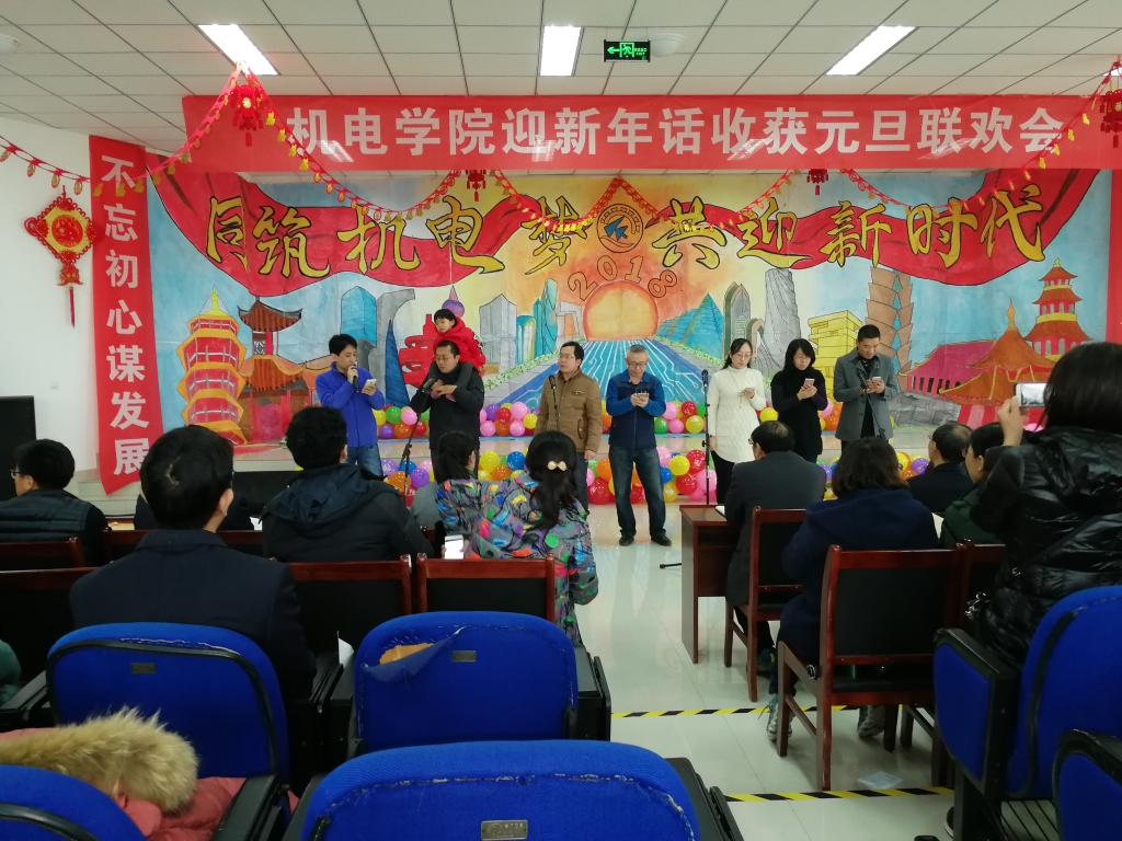 辞旧迎新话收获,携手步入新时代,2017年12月29日下午,机电工程学院“迎新年·话收获”元旦联欢会在机电楼530会议室拉开帷幕。机电学院党政领导班子和全体教师参加本次联欢会。