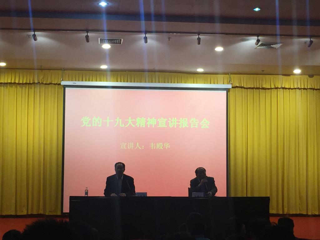 在近2个半小时的讲授中,韦殿华理论联系实际,紧扣党的十九大报告原文,紧紧围绕习近平新时代中国特色社会主义思想这个主线,高屋建瓴、深入浅出地对党的十九大提出的新论断、新要求、新任务作了全面系统而又突出重点的解读。以翔实的数据和大量的案例,全面回顾我国过去五年的历史性成就和历史性变革,系统讲解中国特色社会主义进入新时代,我国社会主要矛盾的变化、“两个一百年”奋斗目标的战略部署、我国经济社会发展重大战略部署以及坚定不移推进全面从严治党等方面内容,并与大家互动交流。