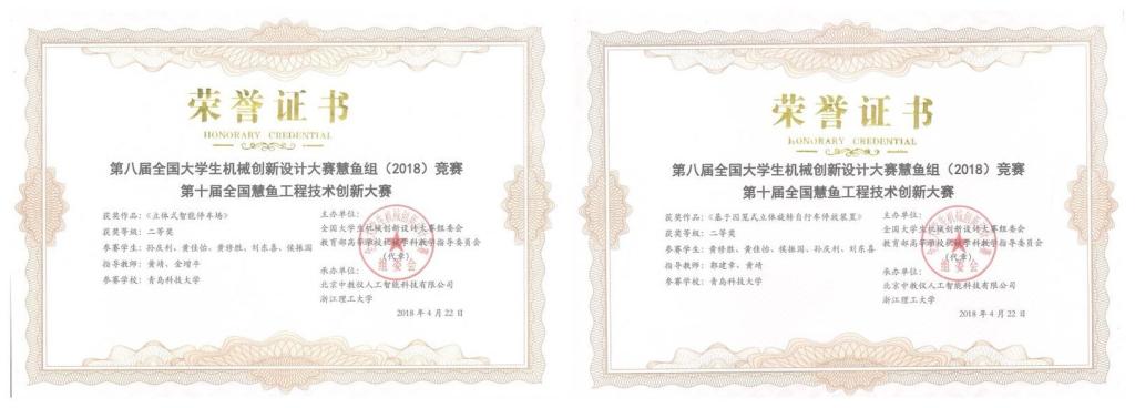 近日,由全国大学生机械创新设计大赛组委会和教育部高等学校机械学科教学指导分委会主办的“第八届全国大学生机械创新设计大赛慧鱼组(2018)竞赛暨第十届全国慧鱼工程技术创新大赛”在浙江理工大学举行。机电工程学院孙庆利、黄佳怡、黄修胜等五位同学制作的两件作品《立体式智能停车场》和《基于囚笼式立体旋转自行车停放装置》,经过现场作品演示与答辩等环节的激烈竞争,最终在入围作品中脱颖而出,双双斩获国赛二等奖。