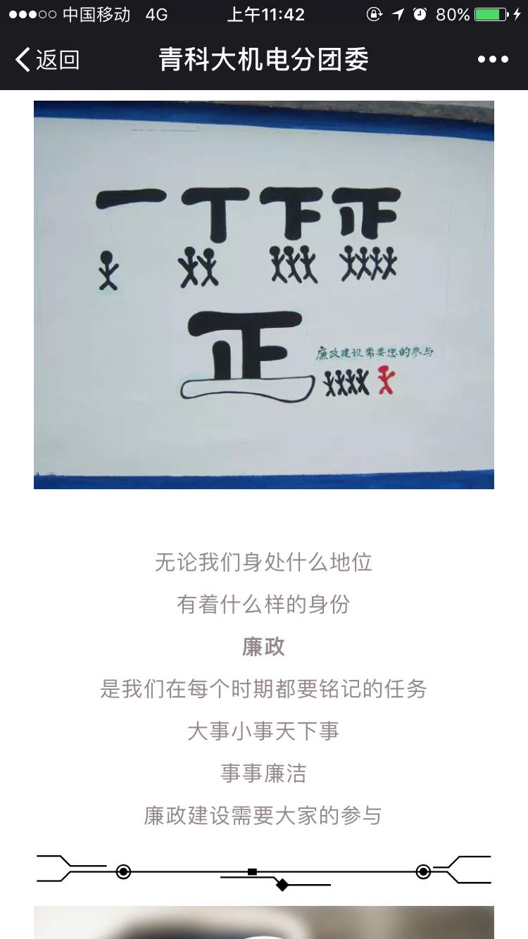 为进一步贯彻落实学校党风廉政教育实践活动要求,扎实推进青岛科技大学机电工程学院党风廉政建设实施方案。机电学院分团委组织开展了以“漫说廉政”方式的党风廉政教育实践活动。