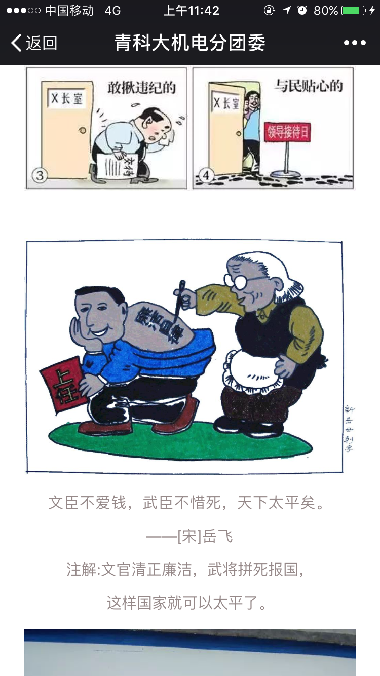 “漫说廉政”以漫画的方式展示“贪污腐败”的问题,进而引出廉政的话题,通过引用古语等方式,切实提高广大教职工的廉政意识。