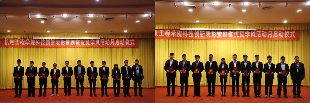 仪式上,孙立军宣读了《关于表彰青岛科技大学机电工程学院大学生科技创新优秀指导教师和科技创新优秀学生的决定》。王作辉先后宣读了《机电工程学院2018年五项赛事立项通知》和《机电工程学院创建优良学风活动月》活动方案。