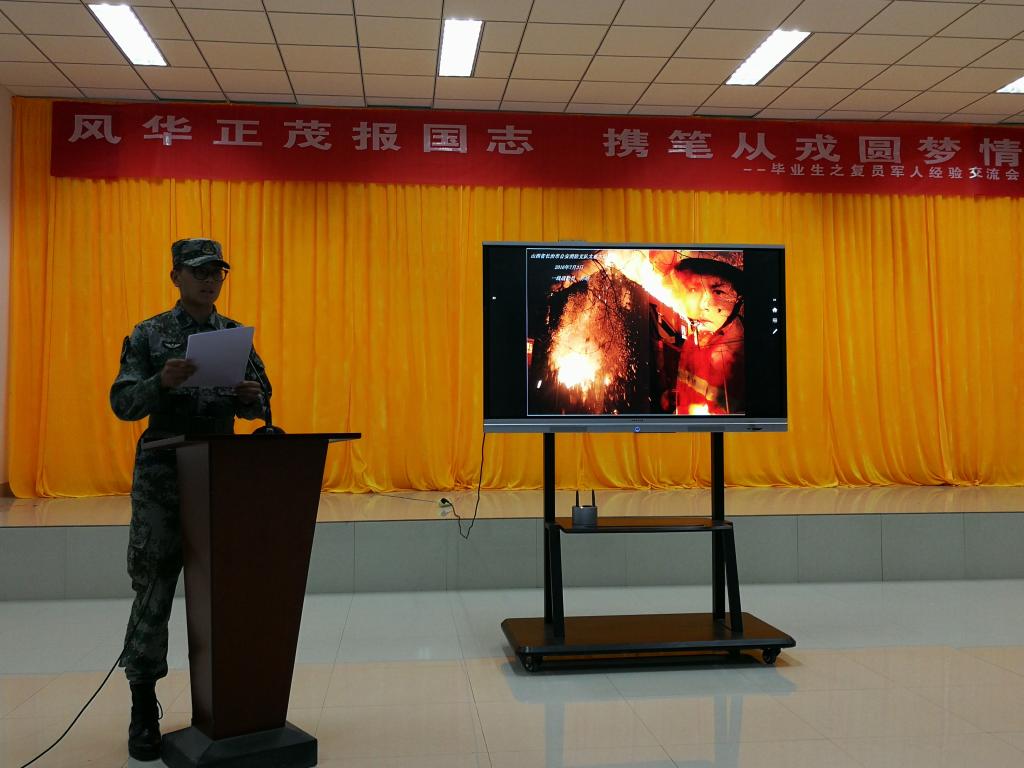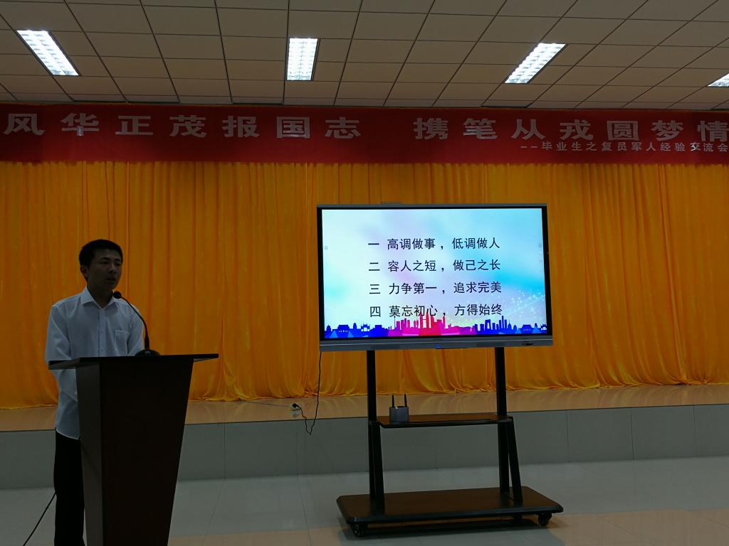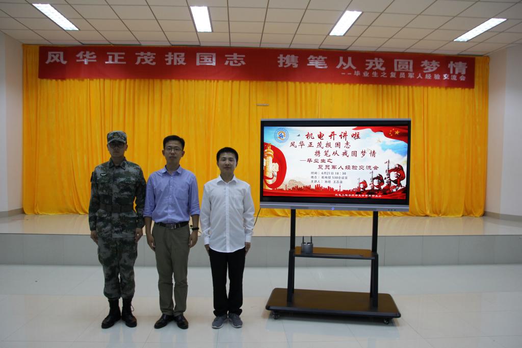 为贯彻落实全国大学生征兵工作精神,深入学习和解读大学生应征入伍政策,进一步明确新时代赋予大学生的使命与责任,发扬毕业生复员军人榜样作用与担当精神,6月21日晚,机电学院在D3-530会议室举行“五有芳华,机忆留夏”毕业生主题系列教育活动之“风华正茂报国志 携笔从戎圆梦情”。毕业生优秀复员军人王志浩和孙皓作为代表出席,各年级团学骨干、入党积极分子、2018年应征入伍学生参加了会议,会议由机电学院分团委副书记逄柏鹏主持。