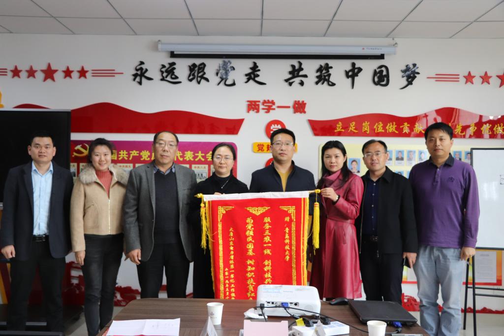 交流会上,孙立军对东明县小井镇第一书记一行的来访表示热烈欢迎,介绍了学院的基本情况和学校学院对第一书记相关工作的重视和支持情况。程晓军从第一书记工作思路、乡村振兴方案、抓党建促脱贫等方面,介绍了小井镇两年来的变化,并感谢青岛科技大学绿色发展与生态文明研究团队、青岛高信创新研究院团队对小井镇生态产业规划、循环绿色发展等方面做的工作,同时希望科技大学继续支持小井镇的脱贫攻坚任务。交流会上,第一书记工作组对青岛科技大学和青岛高校信息产业股份有限公司分别赠送锦旗。