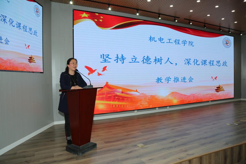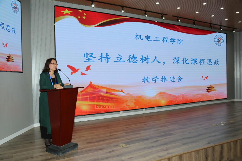 为全面贯彻习近平新时代中国特色社会主义思想和党的十九大精神,贯彻习近平总书记在全国高校思想政治工作会议及学校思政课教师座谈会上讲话的重要精神,坚持社会主义办学方向,落实立德树人根本任务,构建全员、全程、全课程育人格局的形式将各类课程与思想政治理论课同向同行,形成协同效应,将“立德树人”这一教育的根本任务落实落地。5月26日机电工程学院举办“坚持立德树人,深化课程思政”教学推进会、校党委宣传部部长任允晓、校教务处处长王霞、机电工程学院党政领导班子出席会议,机电工程学院全体教职工参加了会议,会议由副院长郭建章主持。