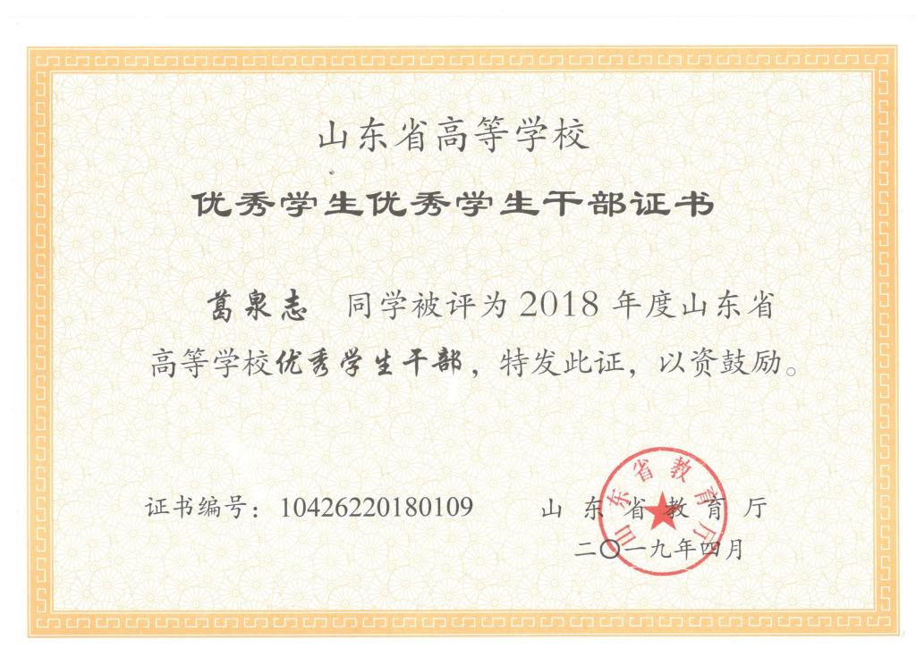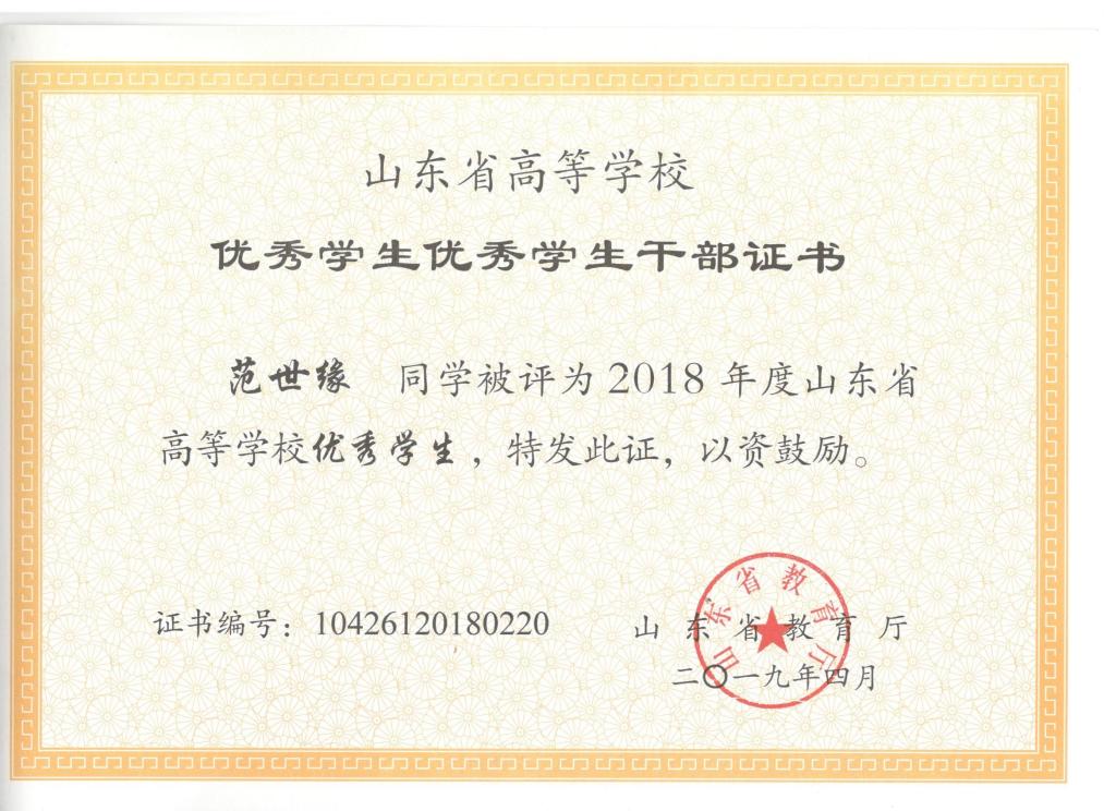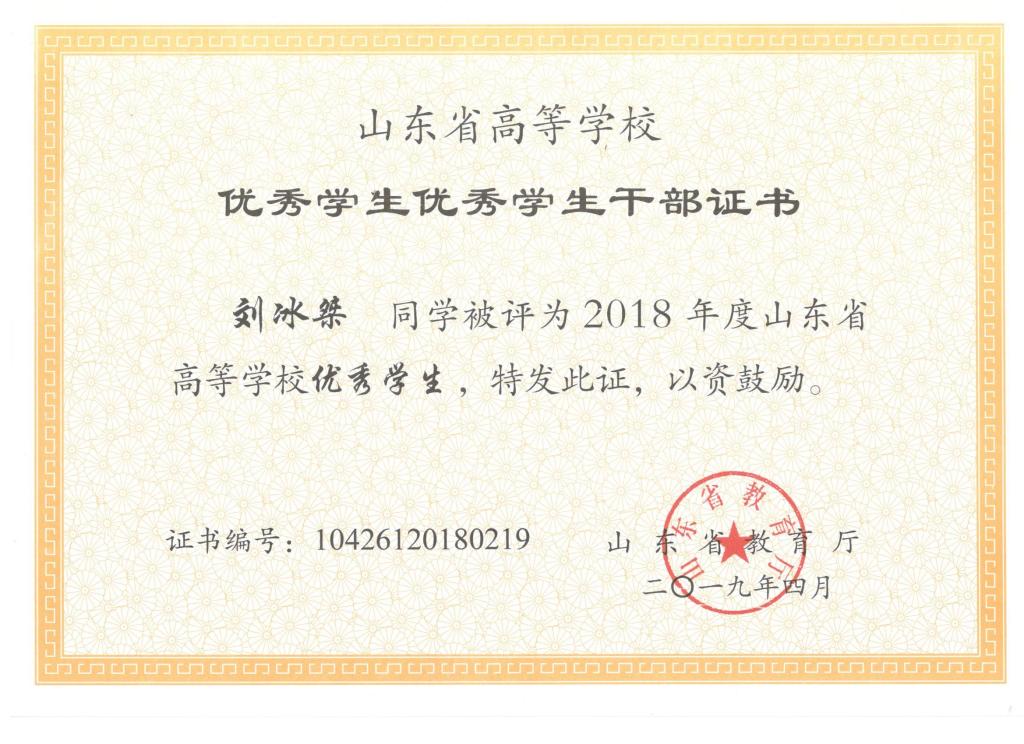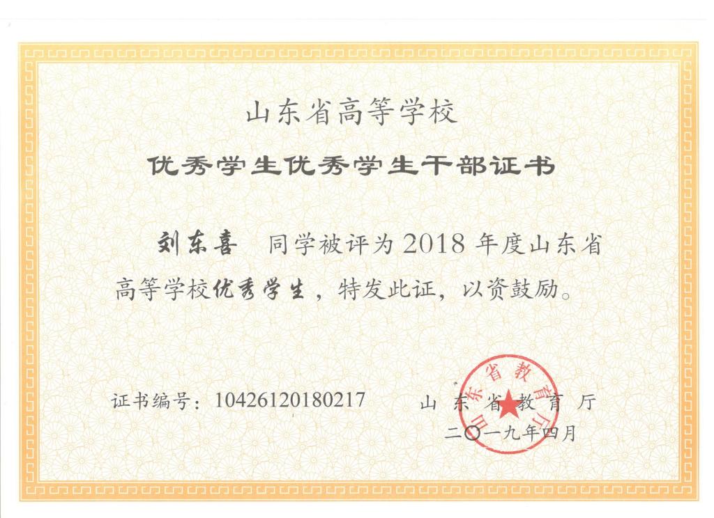 我院刘东喜、张旭、刘冰桀、范世缘同学被确定为山东省高等学校优秀学生,毕岚森、董佳乐、葛泉志被确定为山东省高等学校优秀学生干部,机械实验161班被确定为山东省高等学校先进班集体。