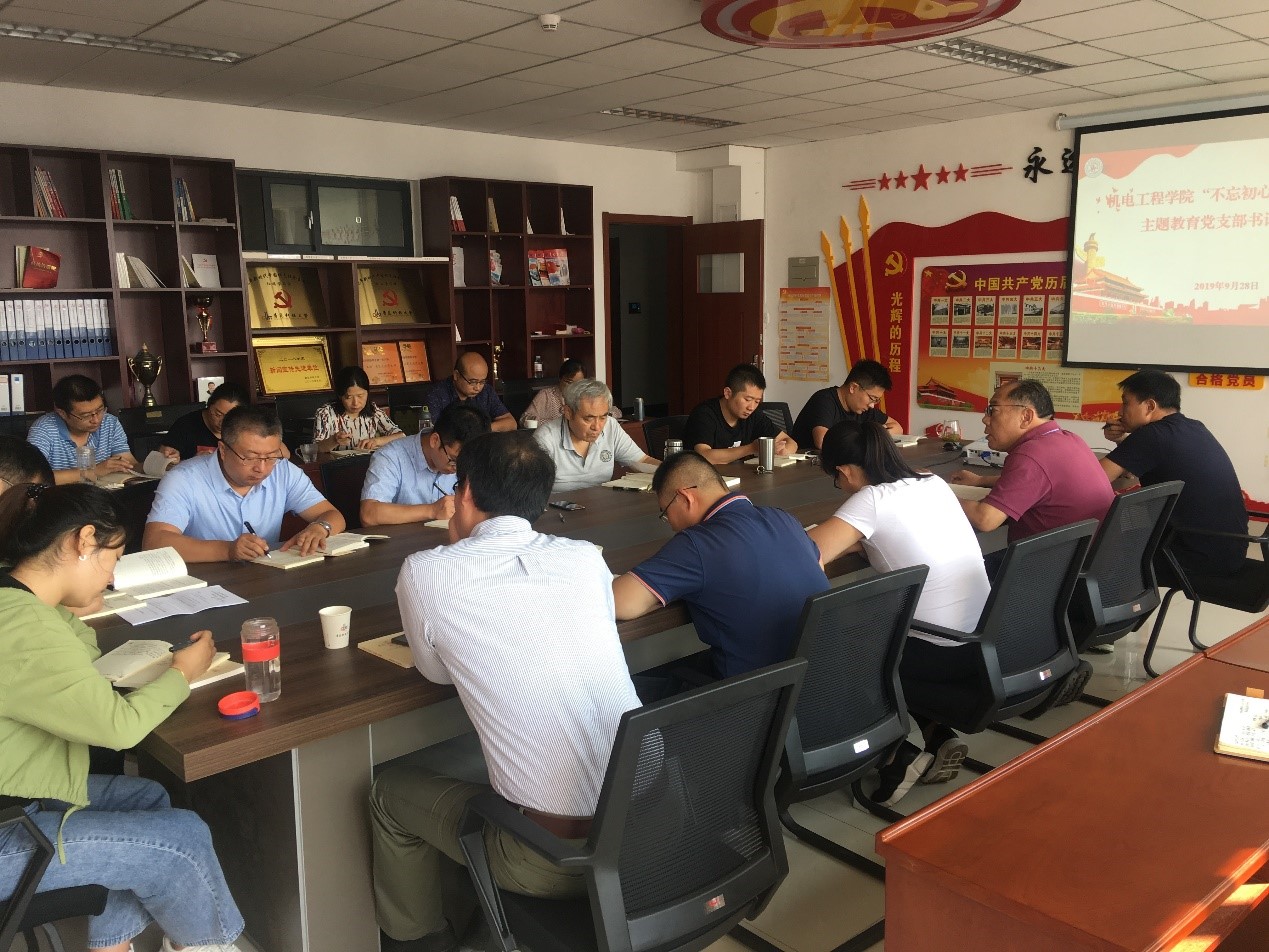 根据学校关于“不忘初心、牢记使命”主题教育相关要求,结合学院党建工作实际,9月28日,机电工程学院党总支组织“不忘初心、牢记使命”主题教育党支部书记培训班,学院各党支部书记参加了学习研讨。