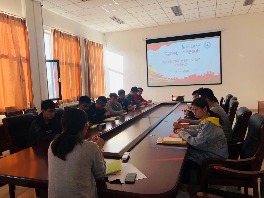 为认真贯彻落实学校“不忘初心、牢记使命”主题教育工作安排,激发研究生新生党员树立正确的人生观、价值观,强化自身的责任意识和使命担当精神,营造爱国爱校氛围、凝聚奋进力量,10月8日下午,机电工程学院研究生第三党支部在机电楼518会议室召开 “不忘初心再出发,牢记使命勇担当”主题教育会议,机电学院党总支副书记兼副院长王伟参加并主持了会议。