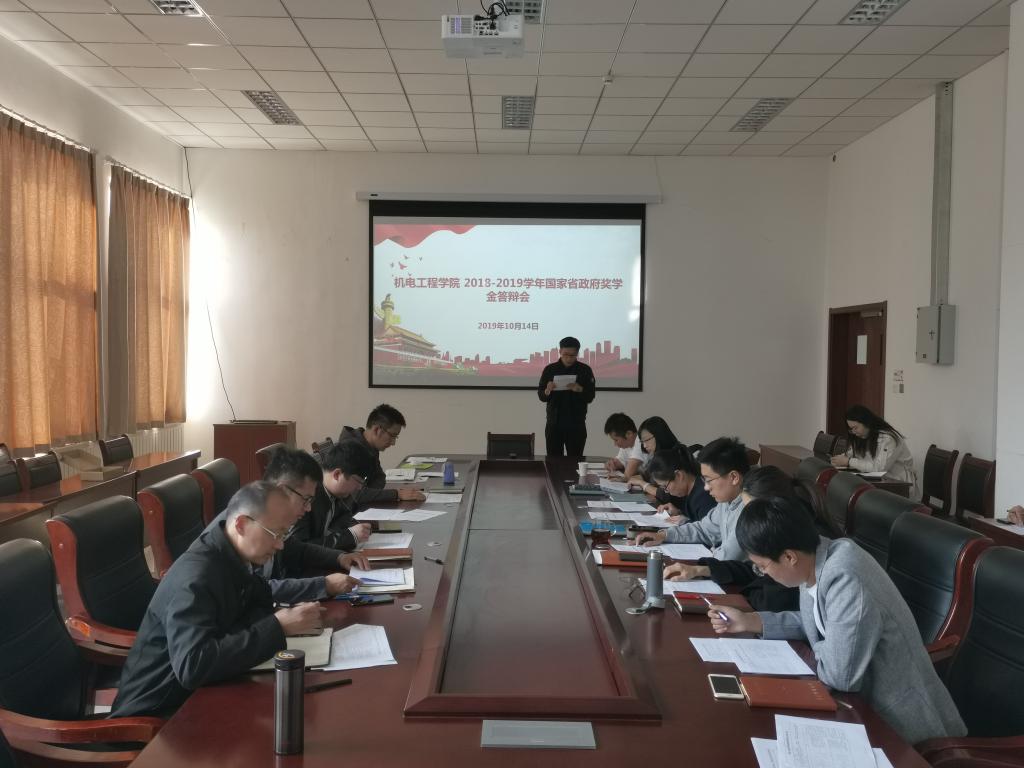 根据山东省学生资助管理中心《关于做好2019年高校奖助学金评审工作的通知》(鲁学助2019【22】)号文件精神,和学校要求,10月14日下午,机电学院在机电大楼518会议室举行2018-2019学年国家奖学金、省政府奖学金答辩会。机电学院副院长杨化林与机电学院全体辅导员、学生评审代表参加了答辩会。