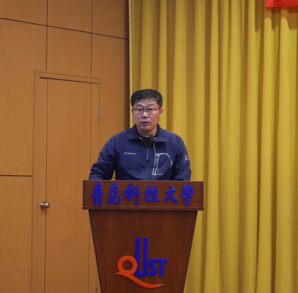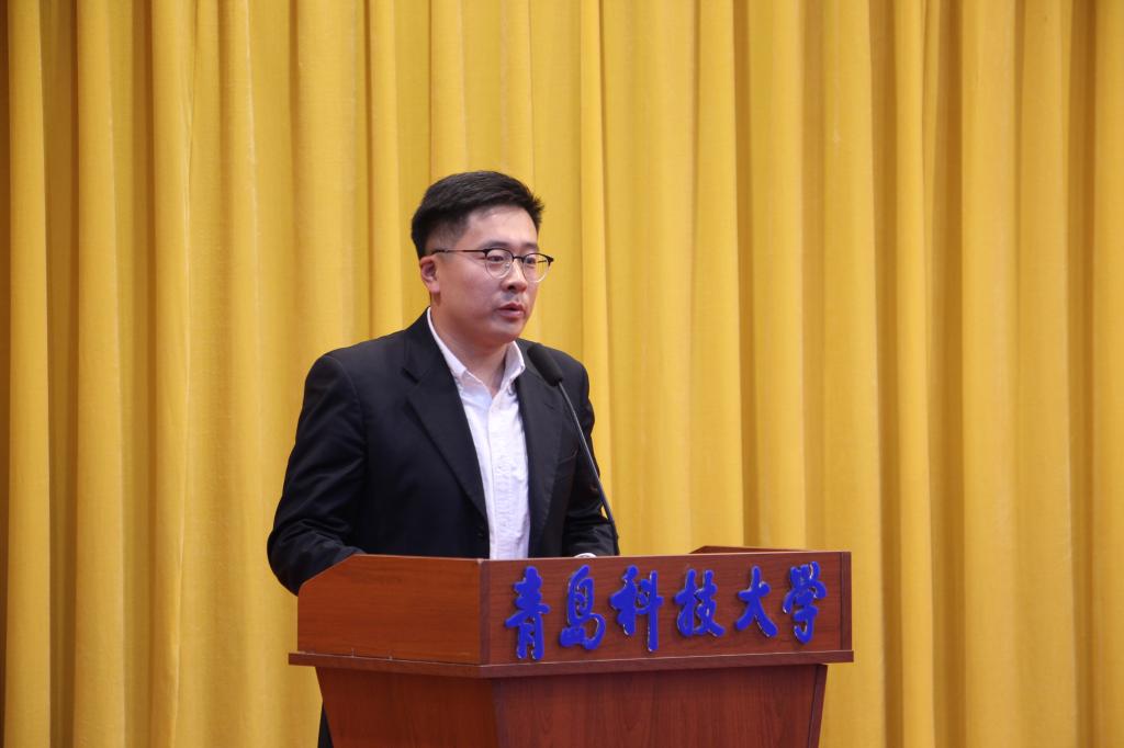 邢坤宣读了《关于聘任青岛科技大学机电工程学院2019学年领航学长的决定》。苗清为2019学年领航学长代表颁发了聘书。