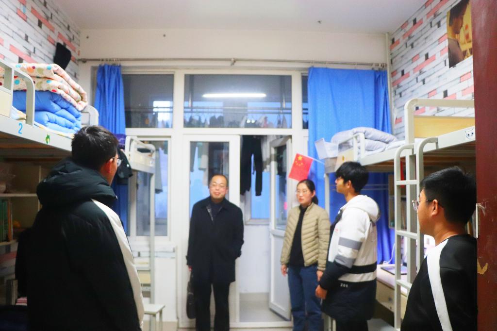 座谈后,丁林深入北苑3号楼、2号楼学生宿舍,走访调研了六新书屋,并深入学生宿舍了解学生日常生活、学习、就业情况。