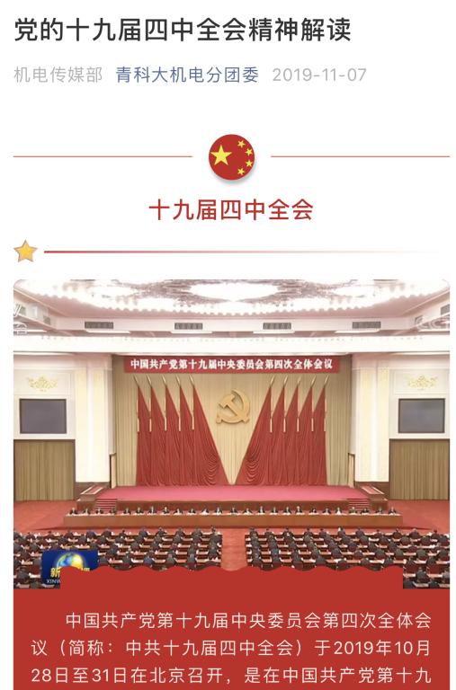 一年来,学院坚持讲好机电故事,发好机电声音。全年共发新闻超400篇,其中科大要闻5篇, 综合新闻31篇。日常投稿4篇,“不忘初心、牢记使命”主题教育投稿31篇。学院网站机电266篇,学生工作82篇。学生处网站学院传真投稿12篇。新工科、王跃熙、暑期社会实践等获得市级及以上媒体报道22次。