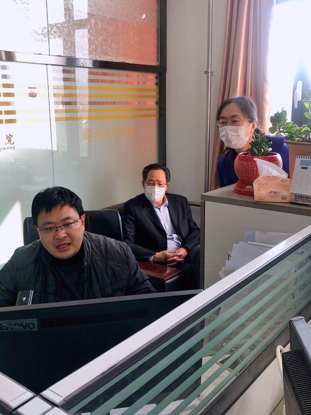 3月6日上午,校党委常委、副校长韦殿华来到机电学院调研学院疫情期间线上教学情况,机电学院领导何燕、郭建章、杨化林、王伟、张卫锋陪同调研。